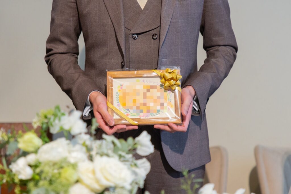 私達はコンパクトな両親の似顔絵を贈呈品に選んで大正解だったなと思っています!