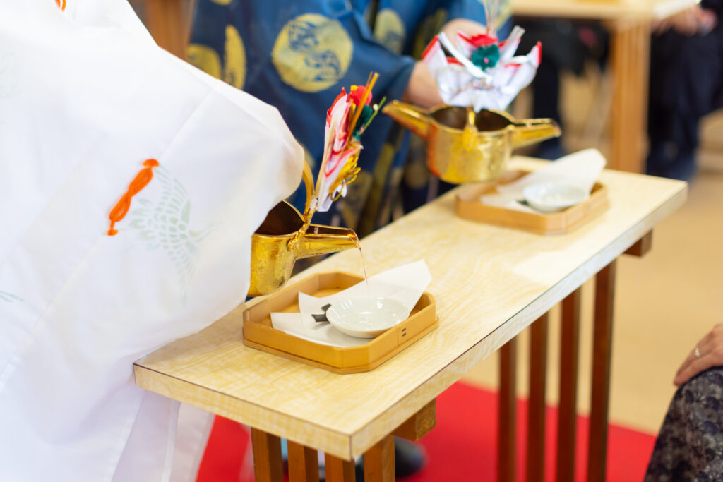 結婚式自体については、披露宴会場から少し離れた神社で行いました。神殿式っていうやつですね。